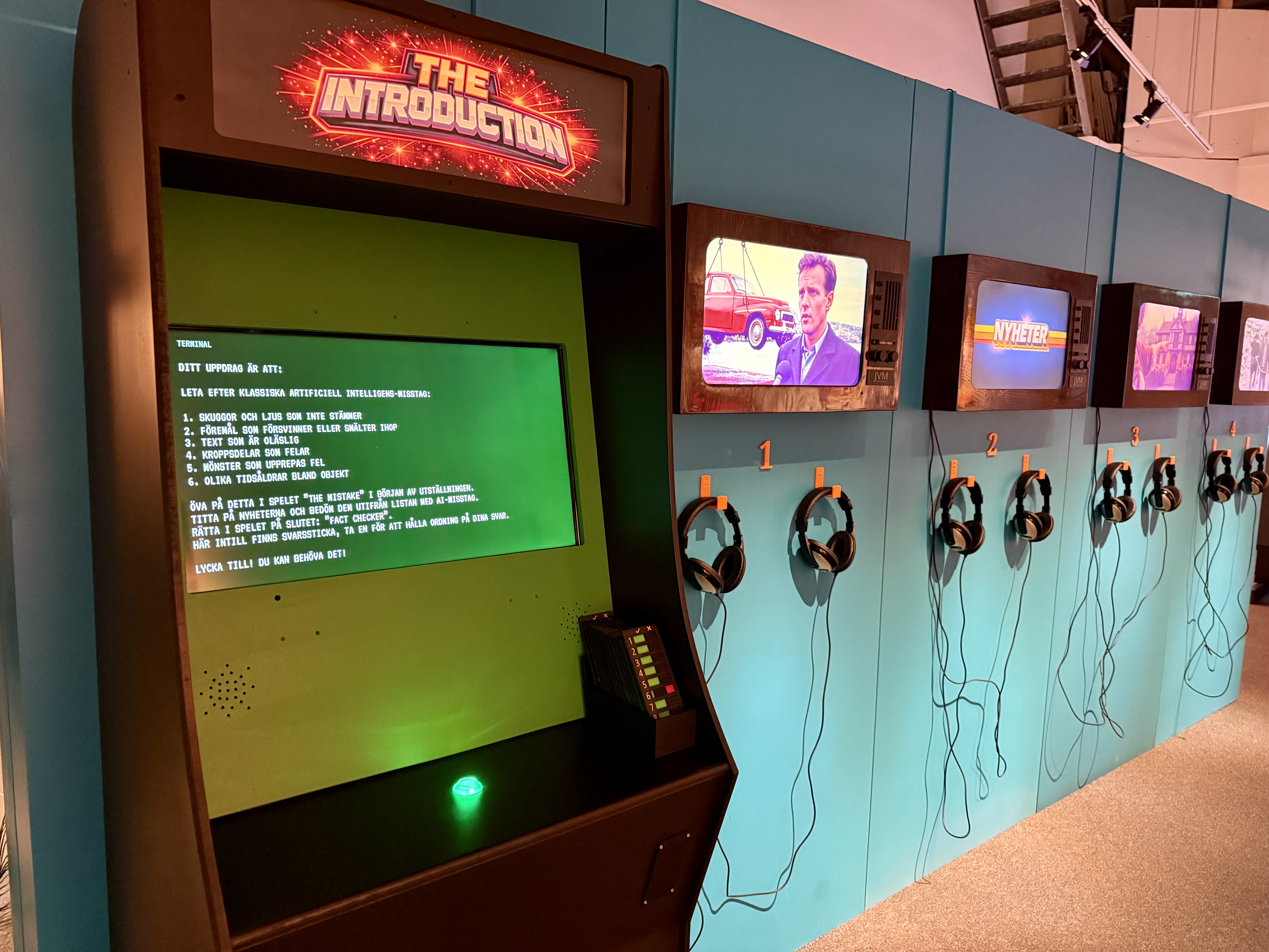 Utställningen består av flera spel och interaktiva stationer där besökaren får träna ögat på att hitta fel i AI-genererat innehåll och fundera över vad som egentligen är sant.